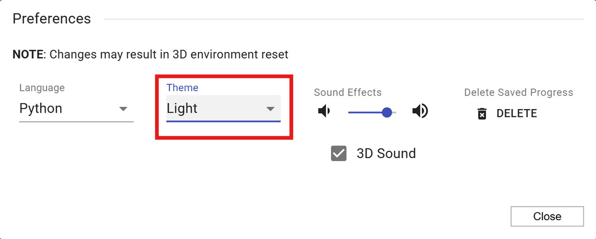 The default theme pin CodeSpace is “Dark,” with a black background and white text. You can increase the visibility and contrast by changing the theme to “Light.” Click on the preferences icon: