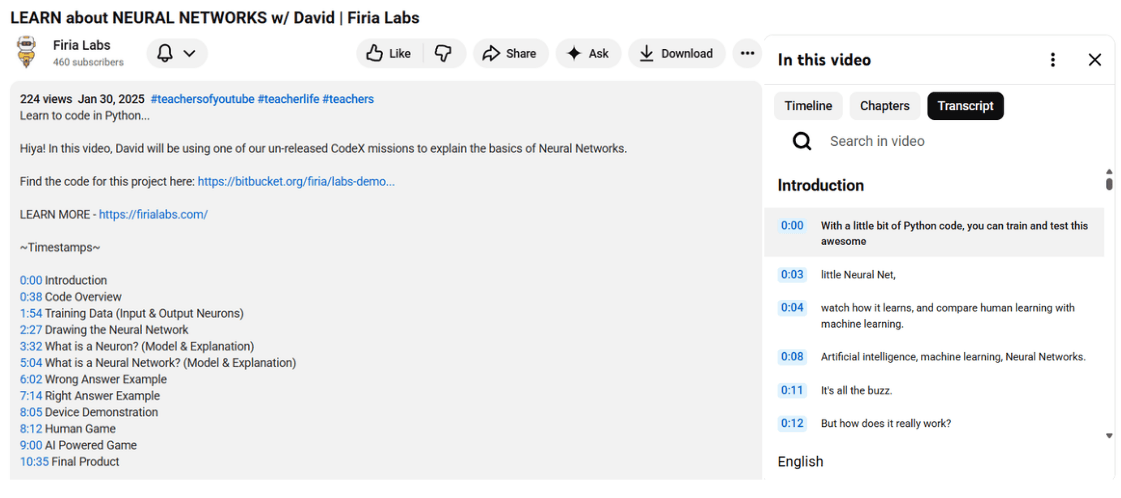 - You can display a transcript of the video using a feature in YouTube.