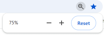 For a Mac OS system, use Command+Plus(+) or Command+Minus(-). A magnifier icon will appear in the search bar, as another way to zoom in and out.